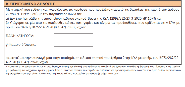 Υπεύθυνη Δήλωση Εργαζόμενων ειδικών κατηγοριών: