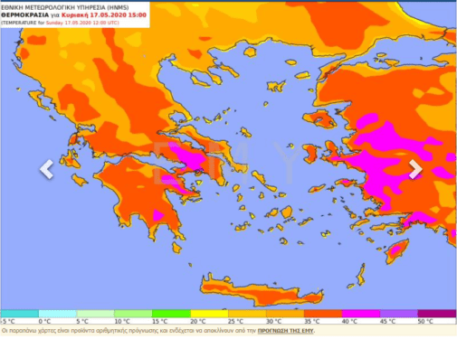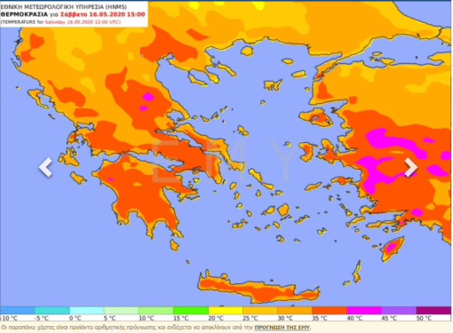Οι θερμοκρασίες που αναμένονται στην Ελλάδα το Σαββατοκύριακο, 16 και 17 Μαΐου, προβλέπεται να φτάσουν κατά τόπους τους 40 βαθμούς Κελσίου, ενώ σταδιακή πτώση αναμένεται από την επόμενη Δευτέρα 18 Μαϊου και κυρίως την Τρίτη 19 Μαϊου.