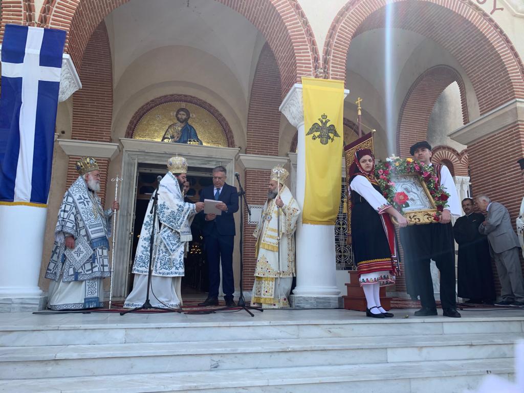 Μετά την ομιλία του υπουργού Εσωτερικών κ. Τάκη Θεοδωρικάκου παρεμβαίνοντας ο Μητροπολίτης Μαρωνείας και Κομοτηνής κ.κ. Παντελεήμωνας είπε ότι το μήνυμα της σημερινής ημέρας πρέπει να είναι η δήλωση του υπουργού Εσωτερικών ότι η κυβέρνηση θα στηρίξει την ανάπτυξη της περιοχής για να μείνουν τα νέα παιδιά στη Θράκη και προσέθεσε ότι μπορεί οι φετινοί σημερινοί εορτασμοί, λόγω της πανδημίας του κορωνοϊού, να είναι λιτοί αλλά σήμερα η Κομοτηνή ξεκινά το πανηγύρι για τον εορτασμό των 200 χρόνων από την επανάσταση του 1821 και αυτό γιατί στη Θράκη χτυπάει η καρδιά της Ελλάδας.
