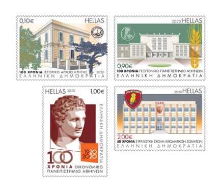 Τις σημαντικές επετείους για τα εξέχοντα αυτά ιδρύματα, που σχετίζονται με την παιδεία και το πνεύμα, τιμούν τα τέσσερα γραμματόσημα της νέας Αναμνηστικής Σειράς που εκδίδουν τα Ελληνικά Ταχυδρομεία και κυκλοφορεί στις 21 Μαΐου με τίτλο «Επέτειοι Γεγονότα (Α’ Μέρος)».