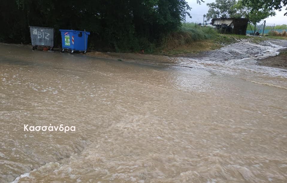 Σε περιοχές της Κασσάνδρας έβρεχε ασταμάτητα με αποτέλεσμα αρκετοί δρόμοι να πλημμυρίσουν. Στην παραλία της Φούρκας ο δρόμος μπροστά στο ξενοδοχείο «Ολύμπιον» είναι απροσπέλαστος από τα νερά της βροχής. Λόγω της έντονης βροχόπτωσης και των κεραυνών, σημειώθηκαν προβλήματα στην ηλεκτροδότηση στο Πόρτο Κουφό, την Τορώνη και την παραλία της Συκιάς.