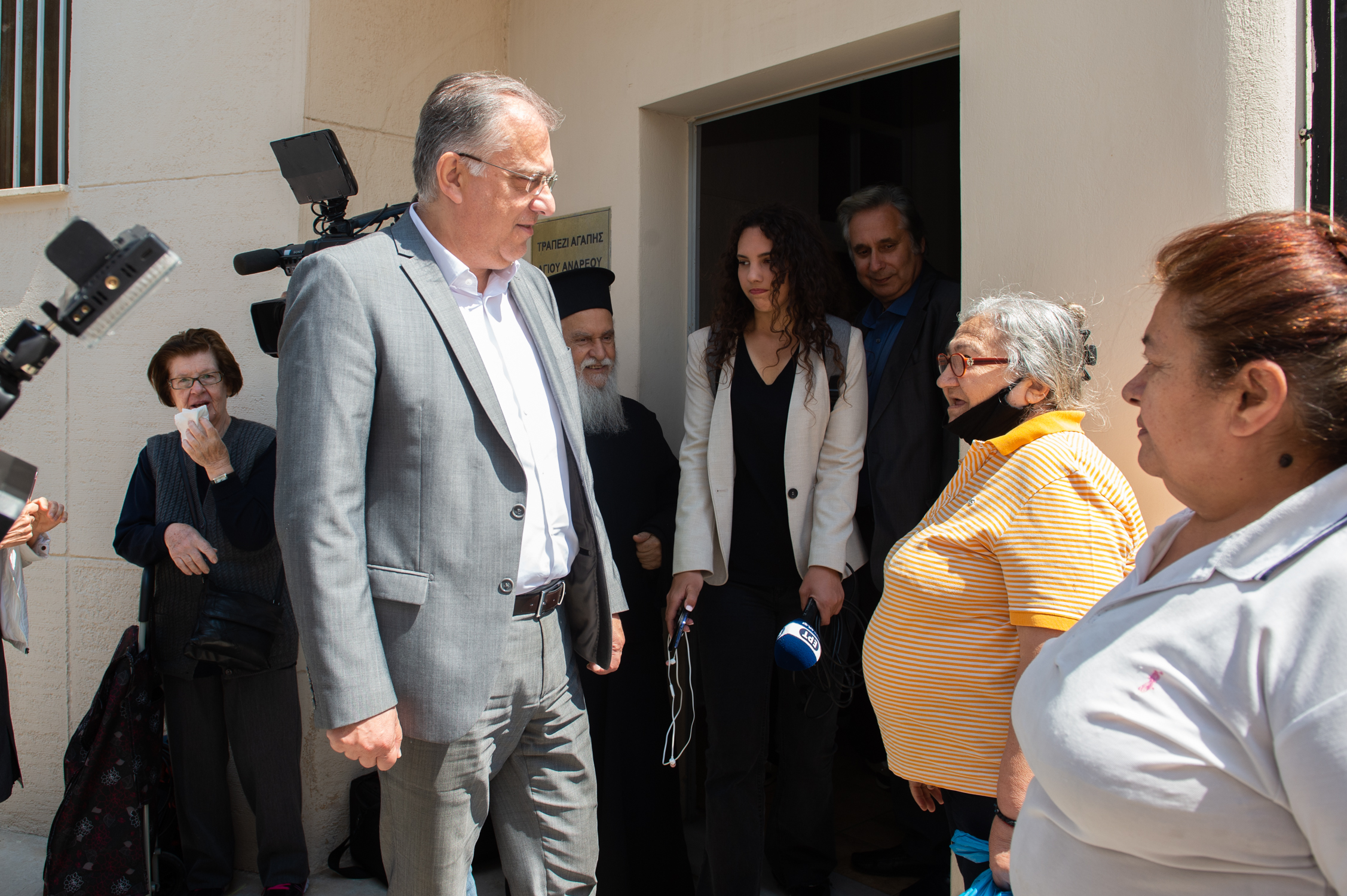 Ο κ. Θεοδωρικάκος συνομίλησε και με πολίτες που λαμβάνουν το συσσίτιο και οι οποίοι του εξέφρασαν την ικανοποίησή τους για την στήριξη.